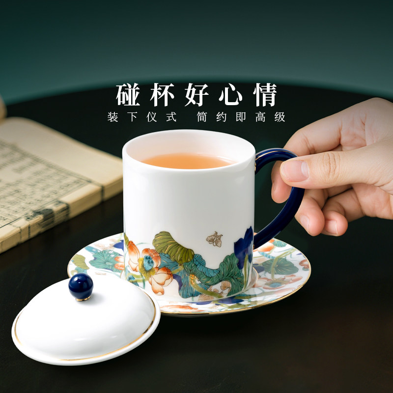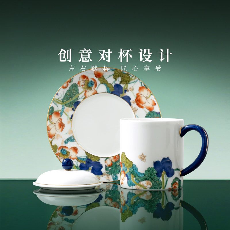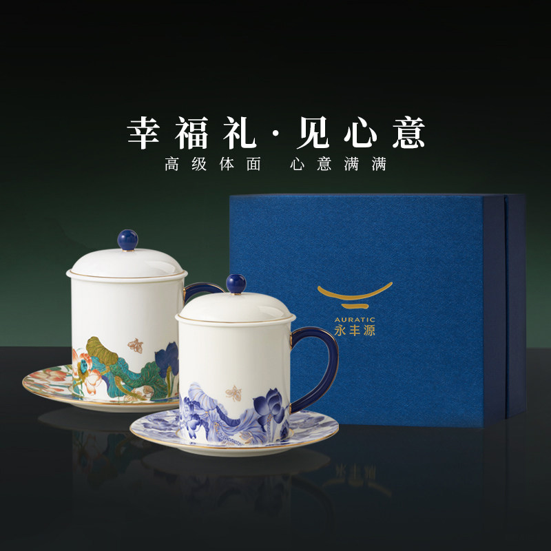 【爆款】国瓷永丰源幸福和鸣盖杯陶瓷水杯茶杯情侣杯结婚礼物