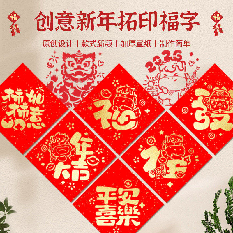 马年福字拓印模板材料包工具手工diy春节新年画装饰亲子幼儿童园