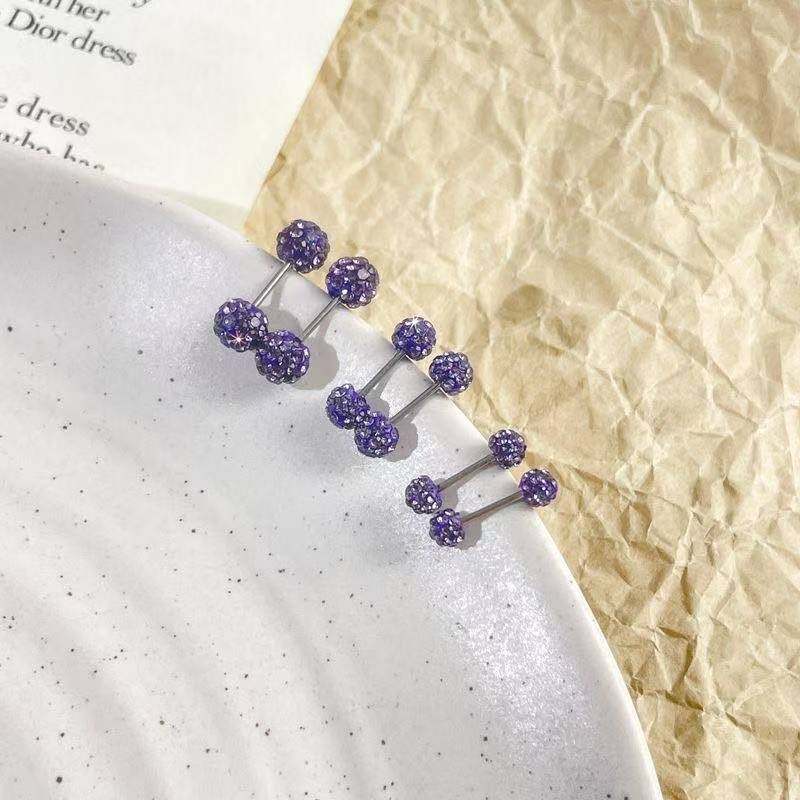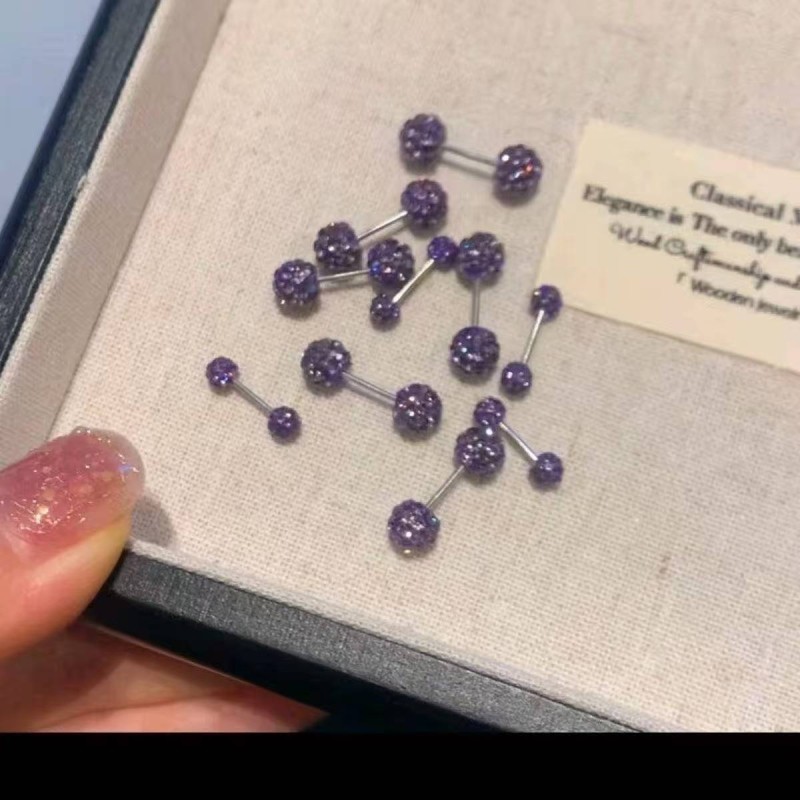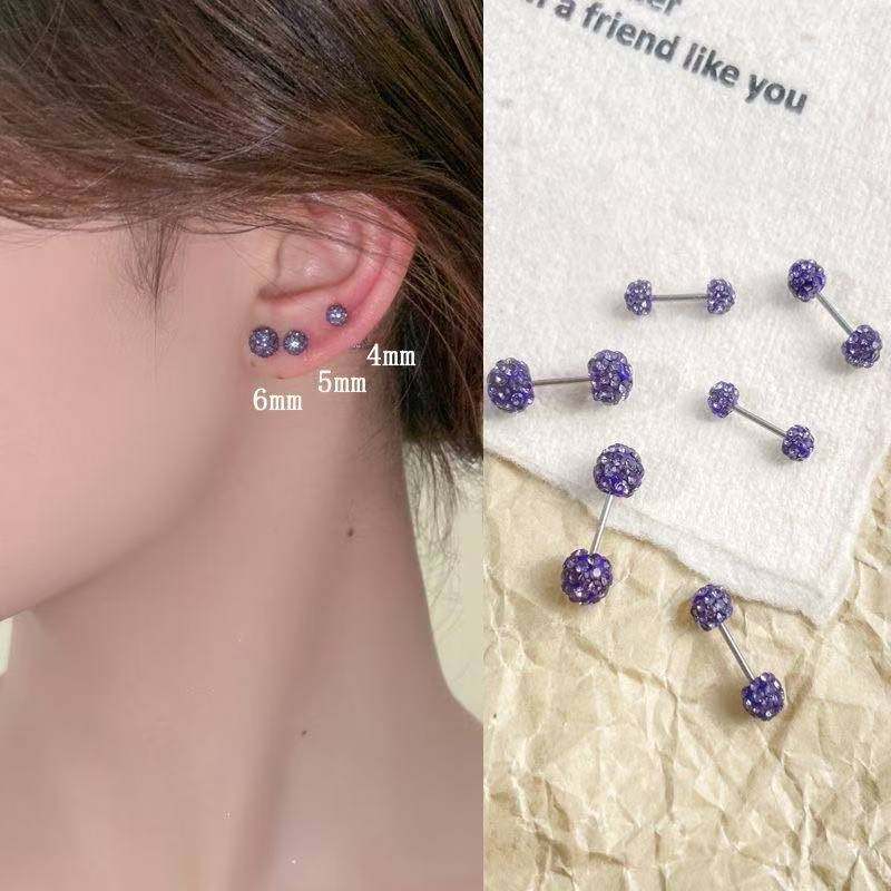 高档紫色钻球螺丝耳钉细针耳洞耳环耳饰双头睡觉高级免摘耳骨双球