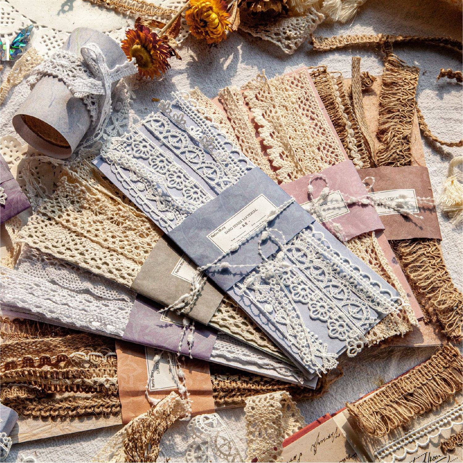 纱洛系列混合材质素材包18张入 轻复古镂空蕾丝花边手帐装饰打底