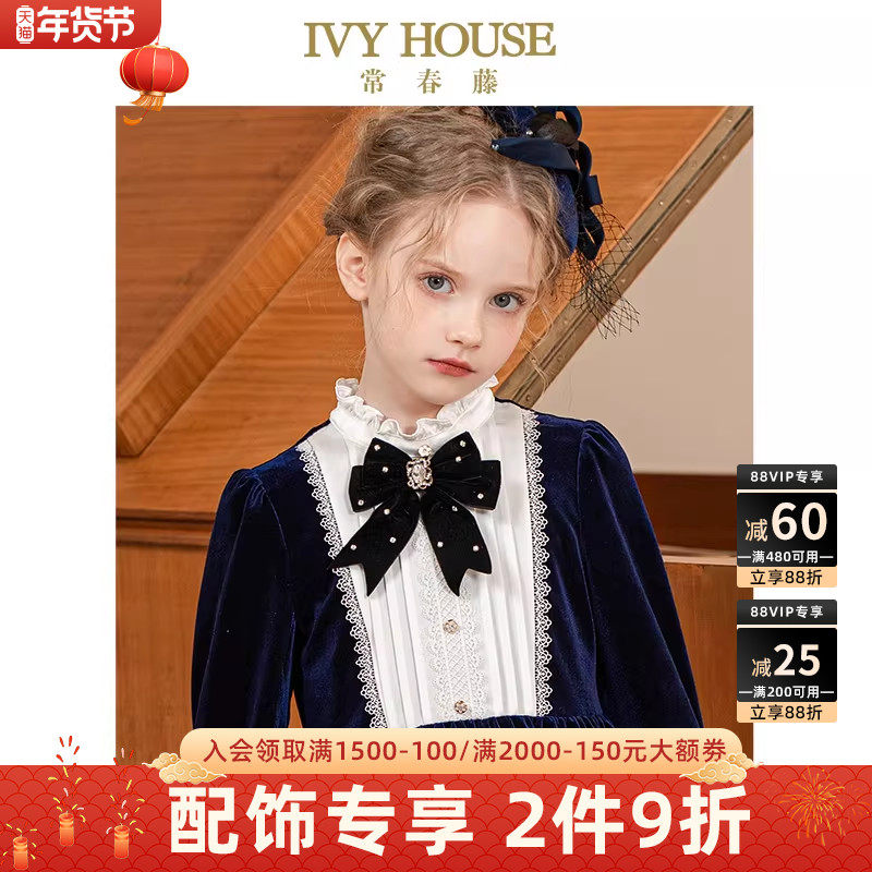 IVY HOUSE常春藤儿童装女童领饰秋季款 丝绒钉珠复古领花配饰洋气