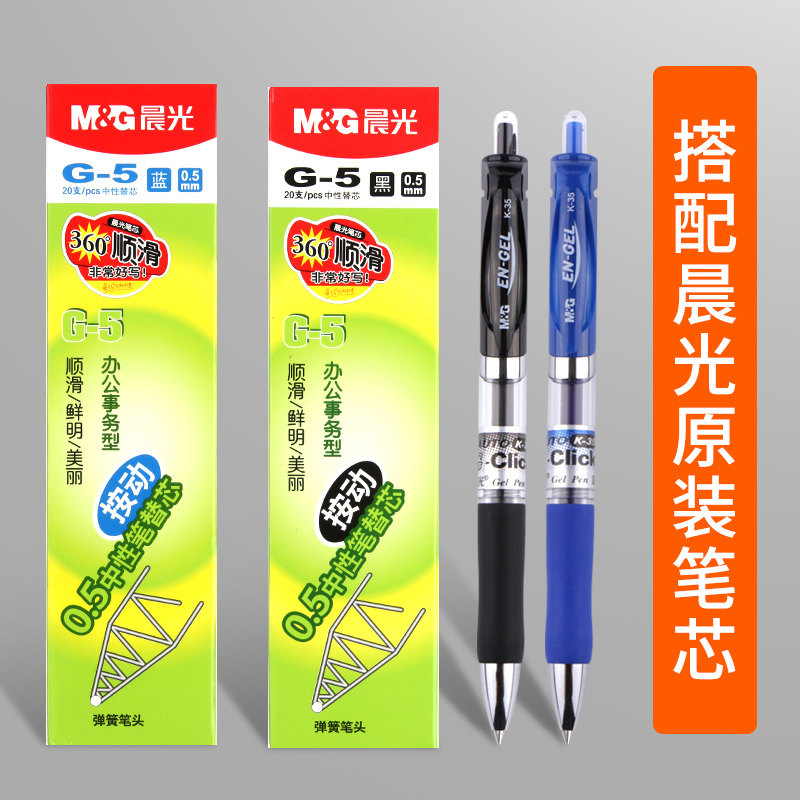 晨光按动中性笔k35水笔学生用子弹头考试专用笔碳素黑色水性签字笔芯0.5按压式圆珠笔红笔教师办公文具用品