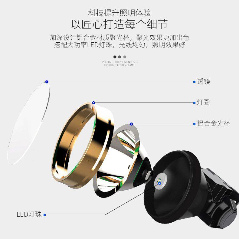 头灯LED强光超亮可充电头戴式矿灯夜钓鱼超长续航手电筒户外远射