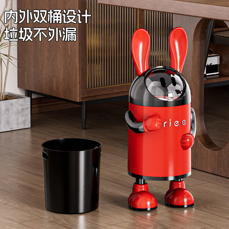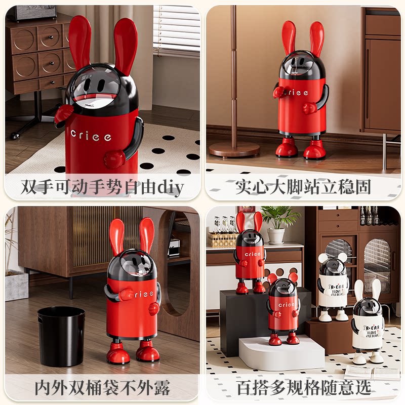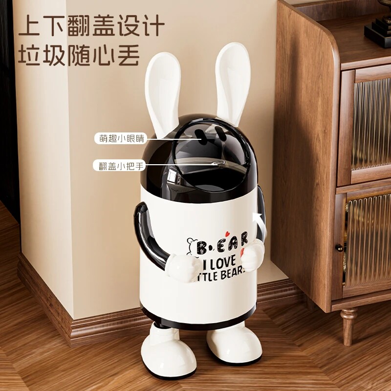 创意轻奢兔耳朵垃圾桶家用高颜值可爱双桶带盖客厅卫生间翻盖纸篓