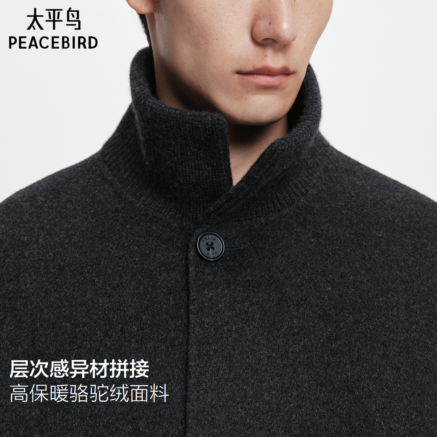 【商场同款】太平鸟男装休闲毛呢大衣材质拼接男士大衣B1AAF4413@