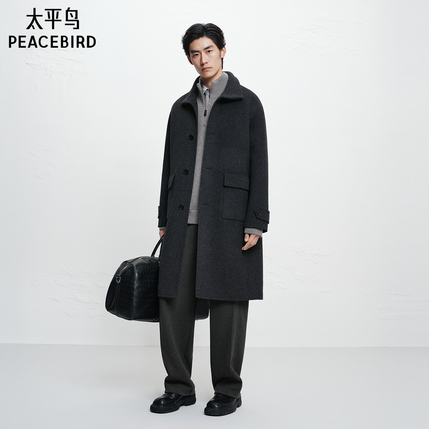 【100%绵羊毛】报喜鸟柴斯特斜纹中长款男大衣堑壕双面呢短款外套