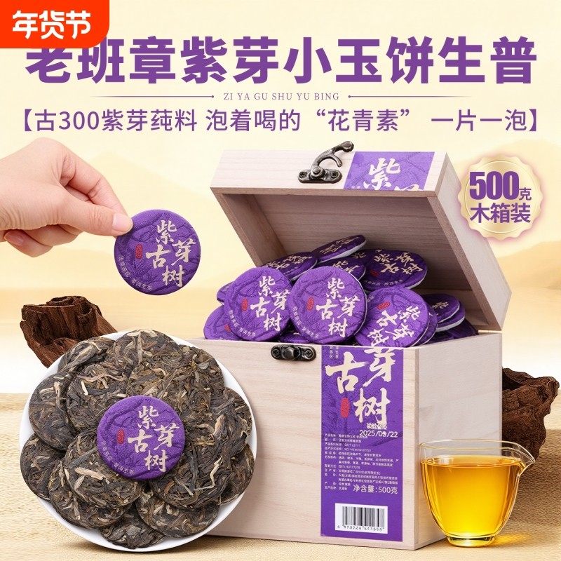 老班章紫芽普洱茶生茶小沱茶饼云南古树茶生普洱礼盒装紫茶叶送礼