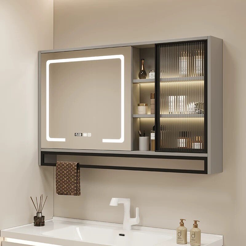 智能实木浴室镜柜单独挂墙式卫生间镜子除雾带灯玻璃门收纳储物柜