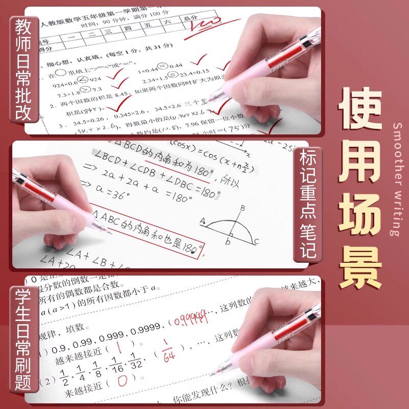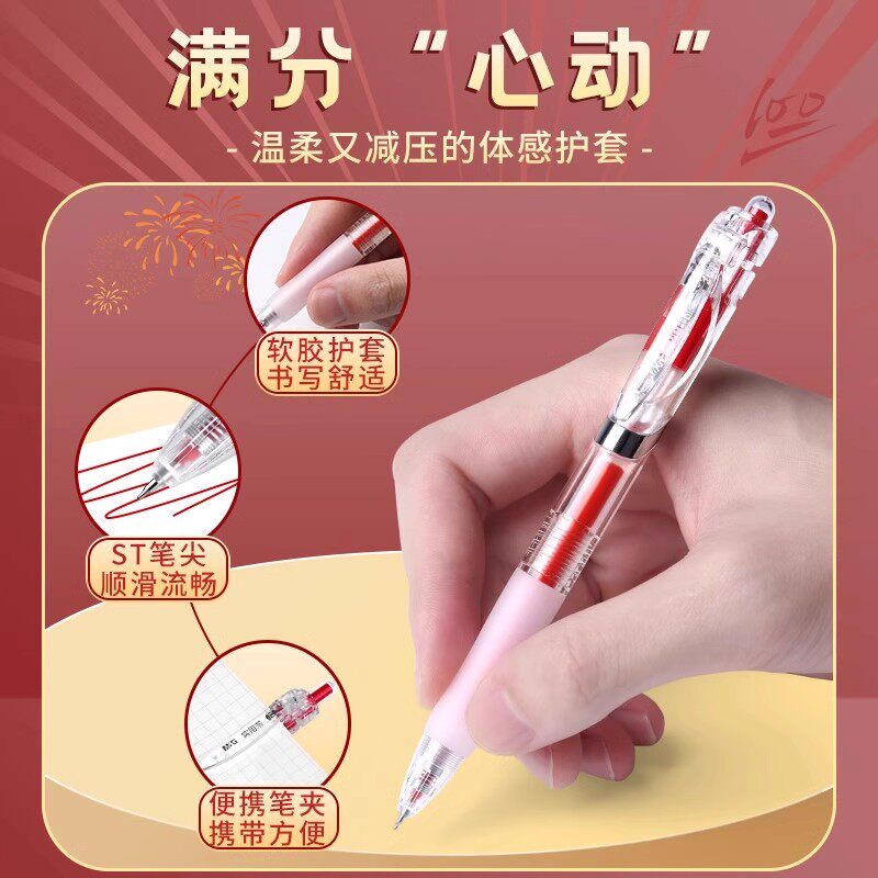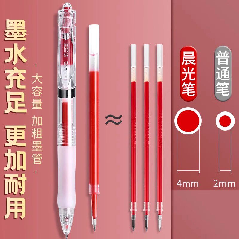 晨光k35红笔0.5mm透明中性笔st笔尖学生日常划重点改正用老师考试批改专用可替换芯水性签字笔按压式学习用品