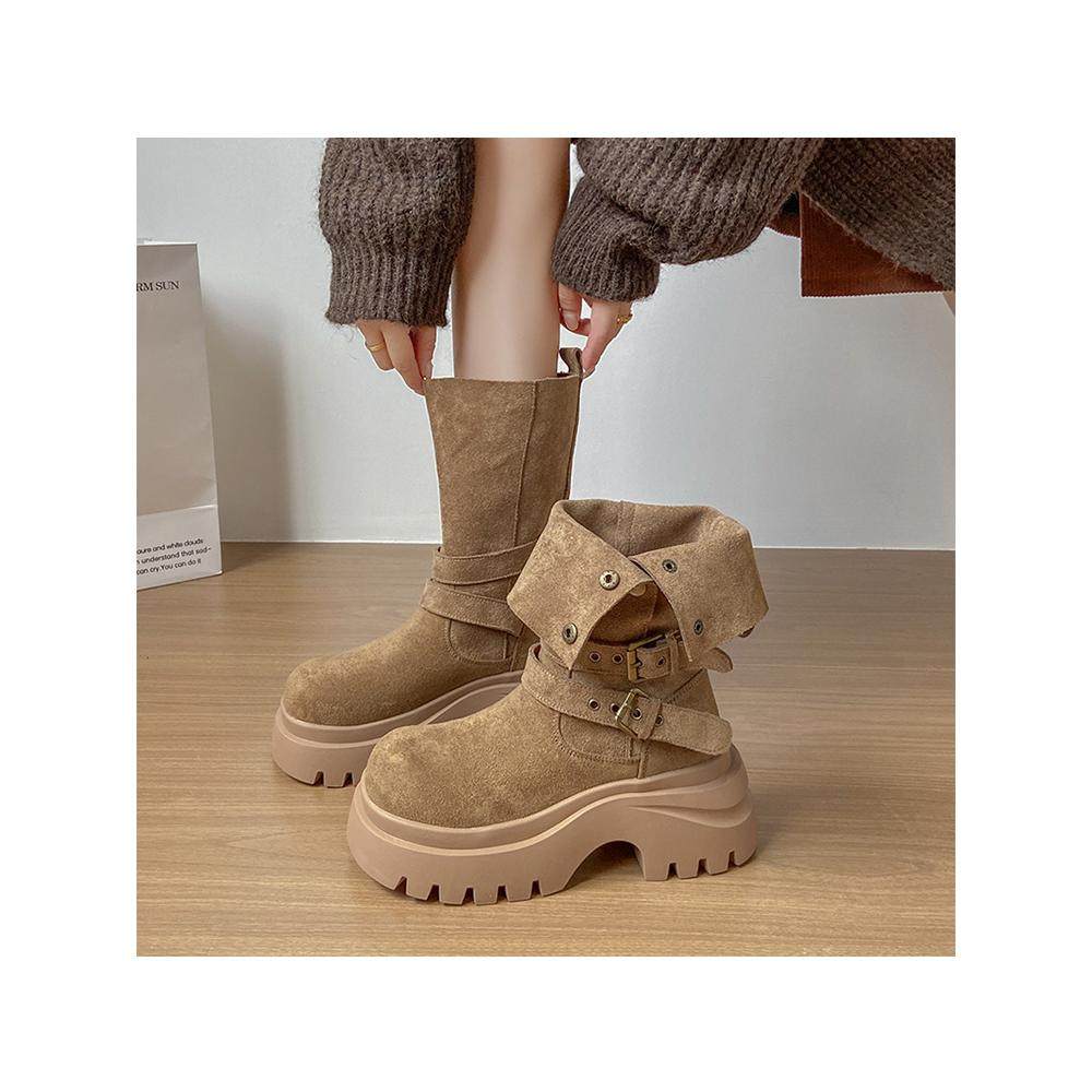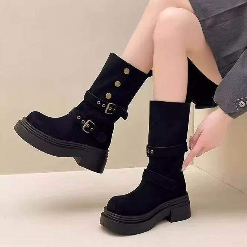 QVAJ2025秋冬季新款马丁靴复古厚底增高瘦瘦靴中筒圆头中跟