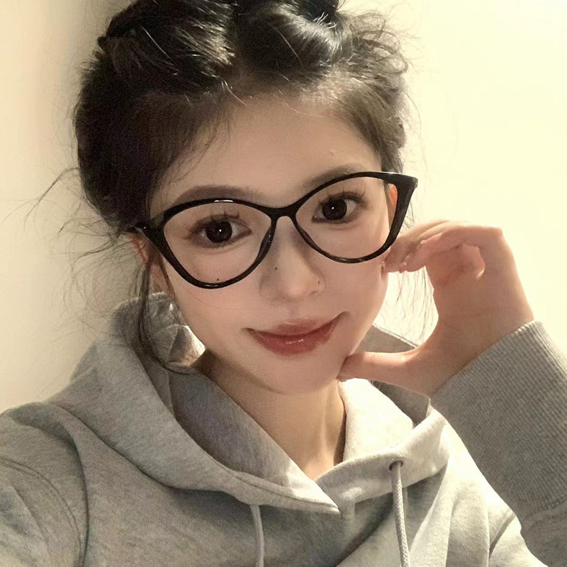 超轻黑色框潮流猫眼型眼镜近视女可配度数素颜神器方圆脸眼睛镜架