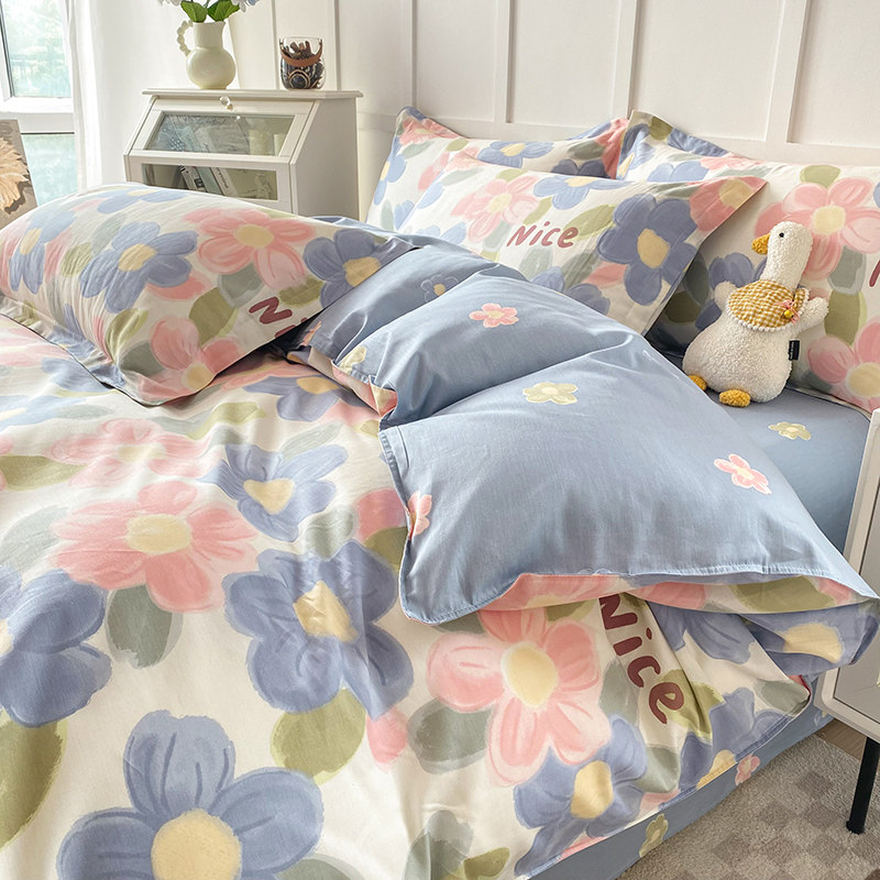 A类双层纱床上四件套纯棉全棉新款田园床单件被套被罩宿舍三件套4