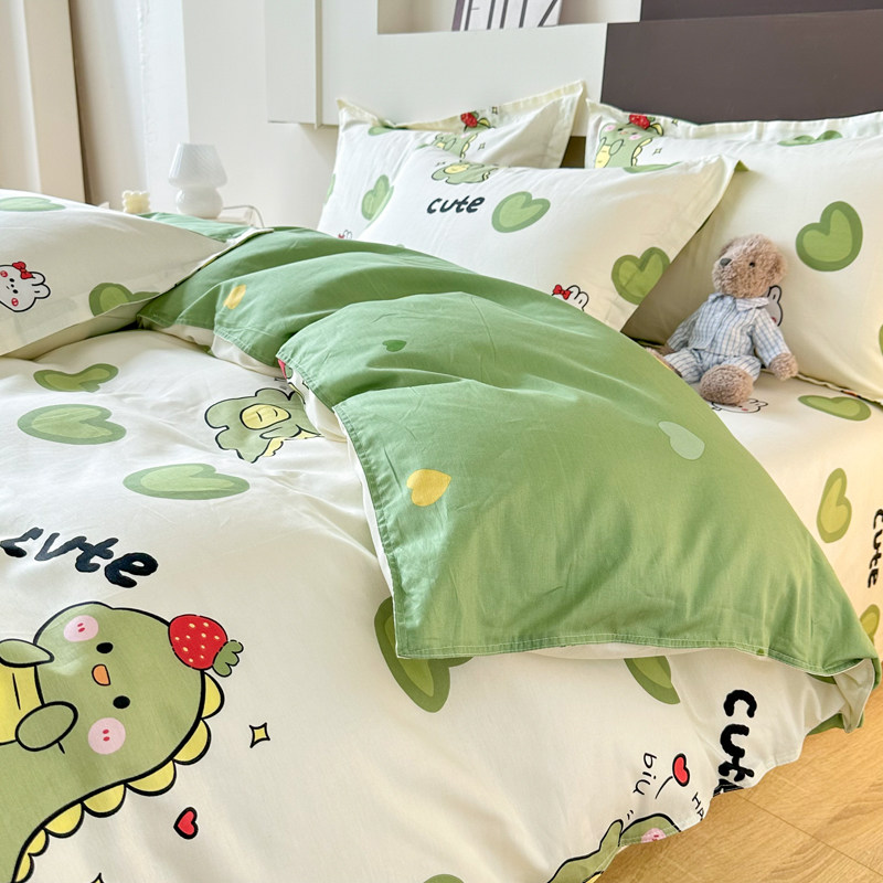 无印良品全棉四件套学生宿舍纯棉卡通儿童被套床单三件套床上用品