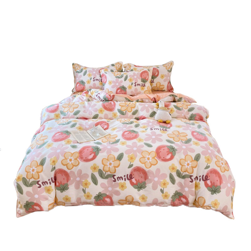 秋冬季加厚四件套牛奶绒被套床单双面加绒被罩床笠学生宿舍三件套