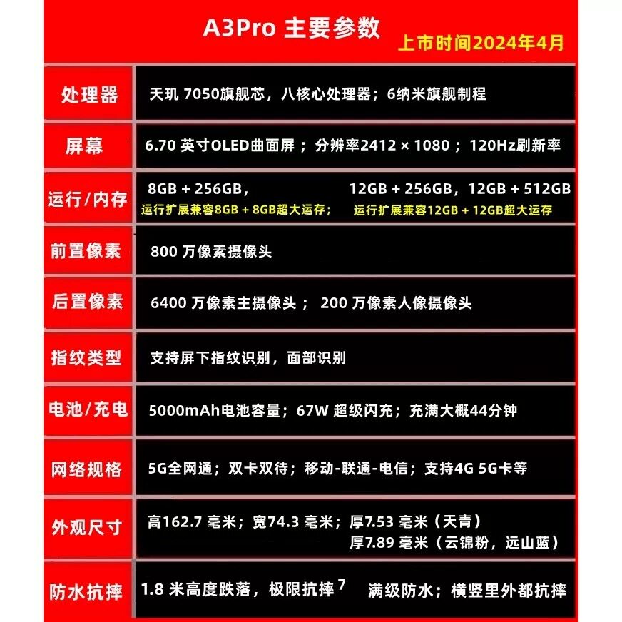 OPPO A3 Pro超耐用战神智能AI手机360°满级防水抗摔正品新款优惠