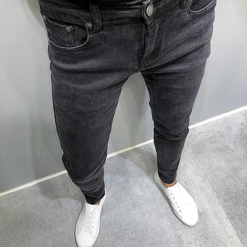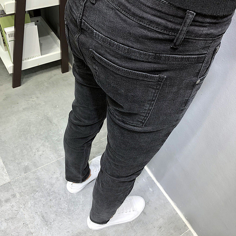 潮男秋新韩版修身深黑灰小脚牛仔裤社会人青年学生chic百搭显瘦