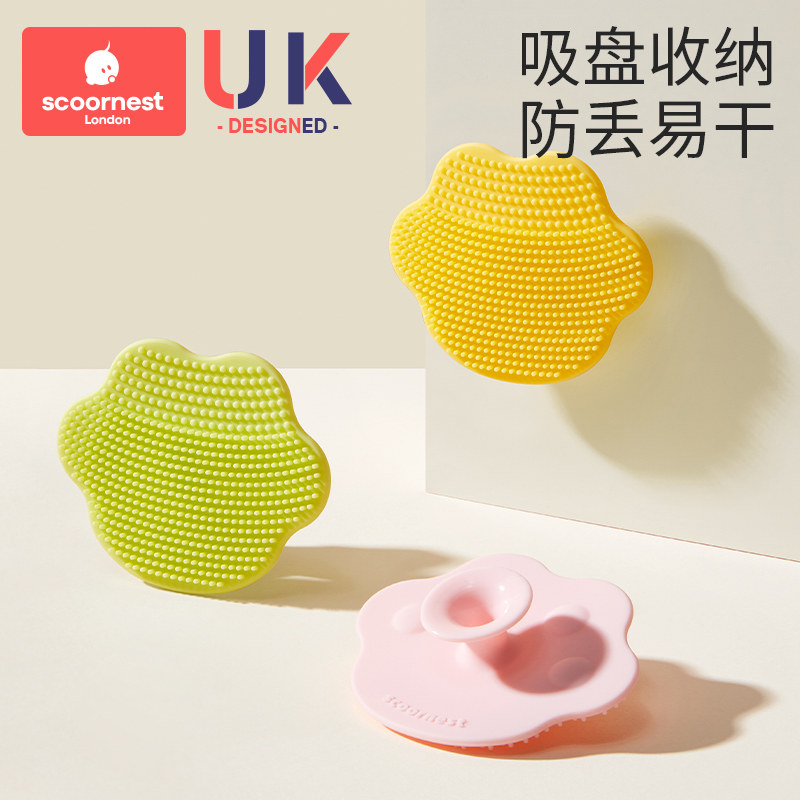 嫚熙婴儿洗头刷硅胶按摩神器宝宝洗澡去头垢用品新生儿搓澡沐浴棉
