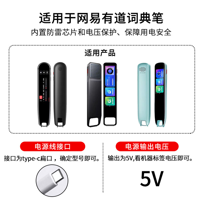 适用于网易有道词典笔电源线typec线适配器数据线S6点读翻译笔充电器英语单词笔智能学习神器AI扫描笔翻译器