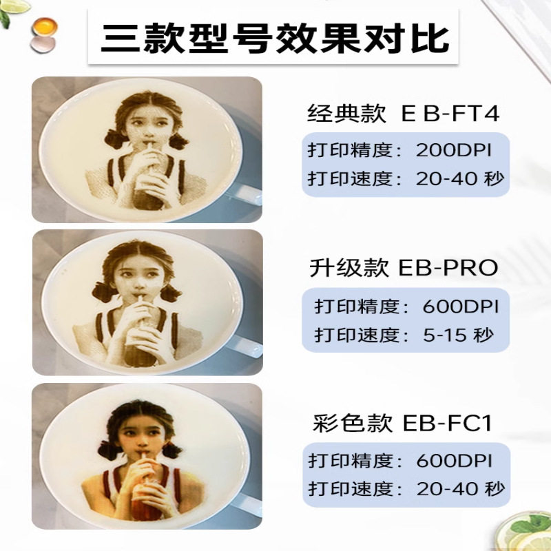 EVEBOT亿瓦3D咖啡拉花食品打印机酸奶口布团扇彩照片美食打印机