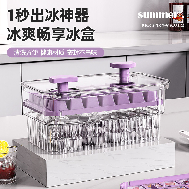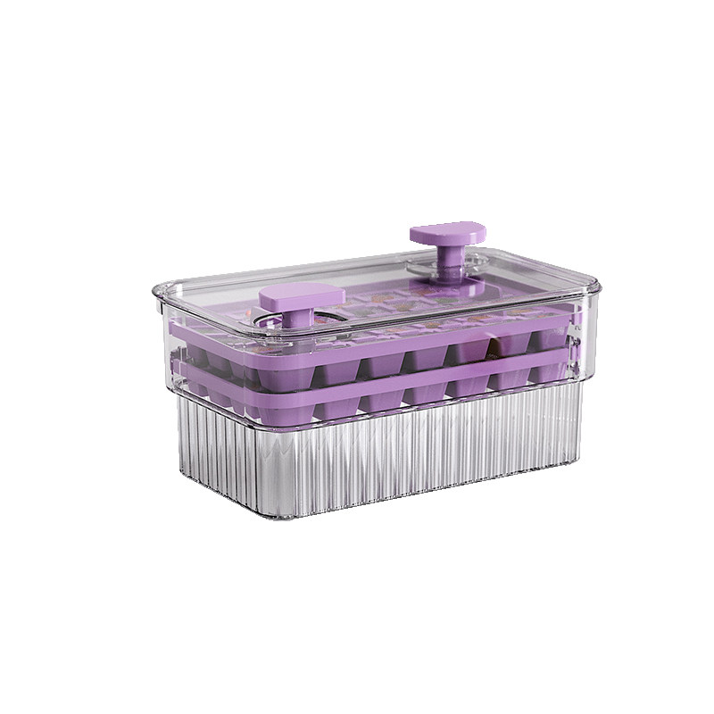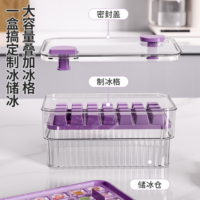 浦司 冻冰块模具 双按压冰格 紫色双层56格