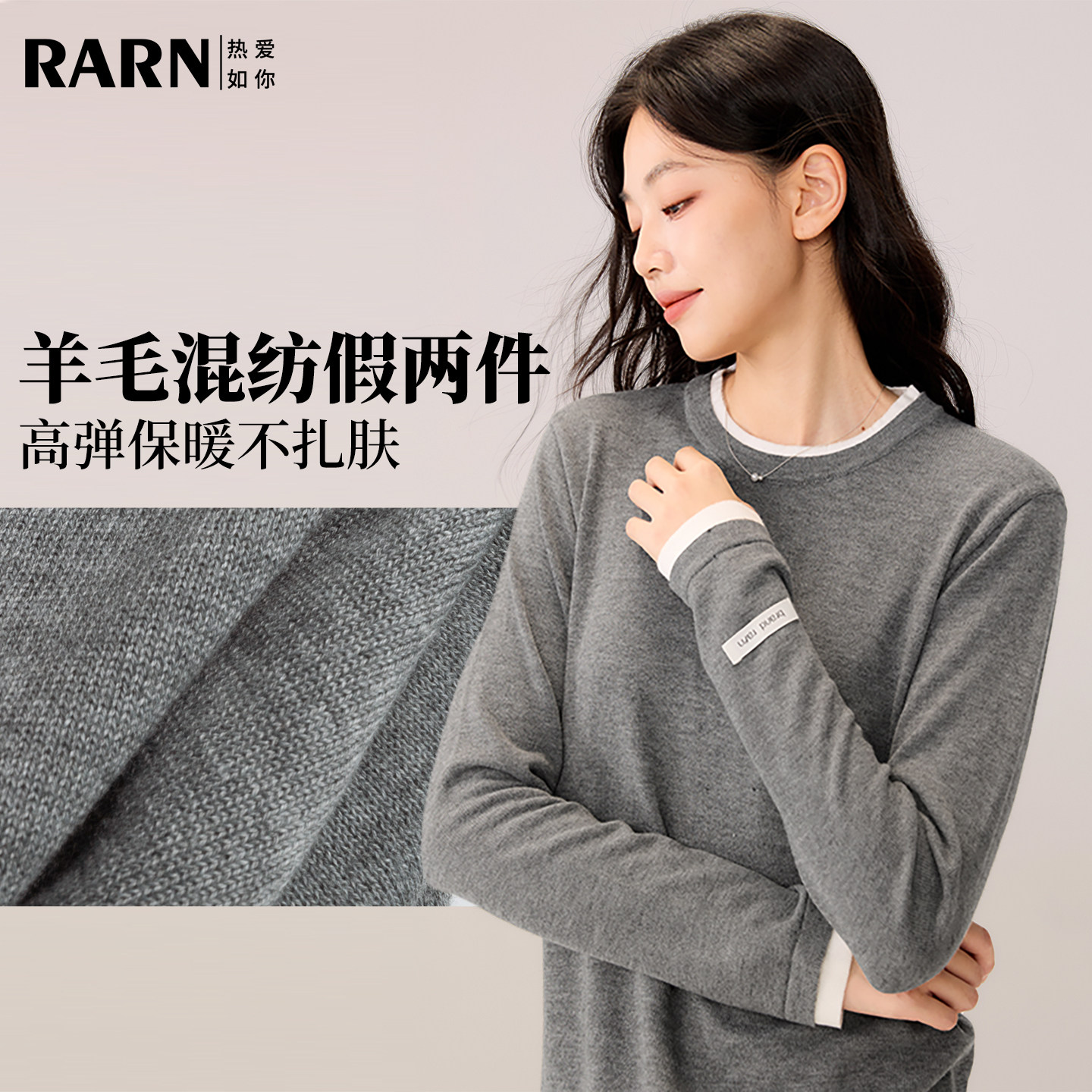 RARN热爱如你2025秋装新款琥珀流光风时尚假两件长袖针织衫女毛衣