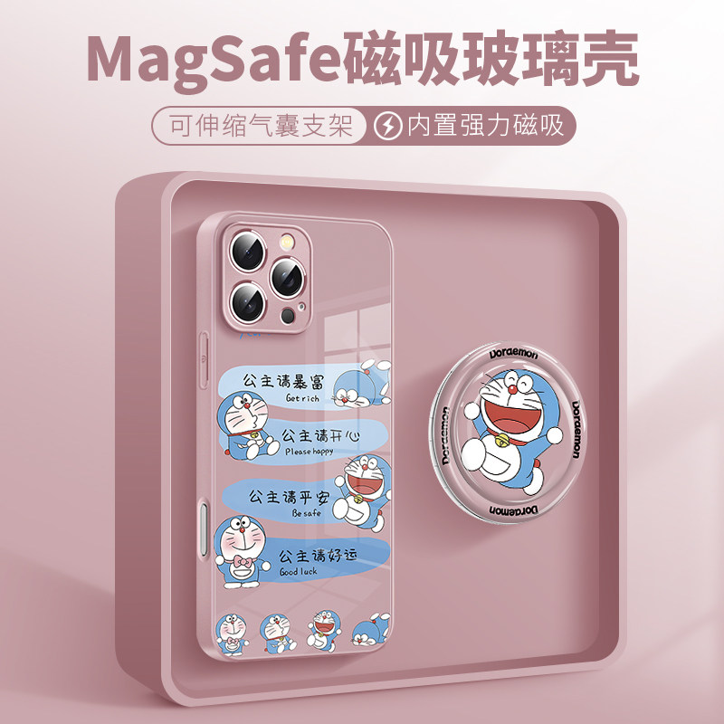 适用于苹果16promax手机壳公主请发财磁吸支架iphone15plus叮当猫14哆啦a梦13小众高级感12全包17保护套防摔