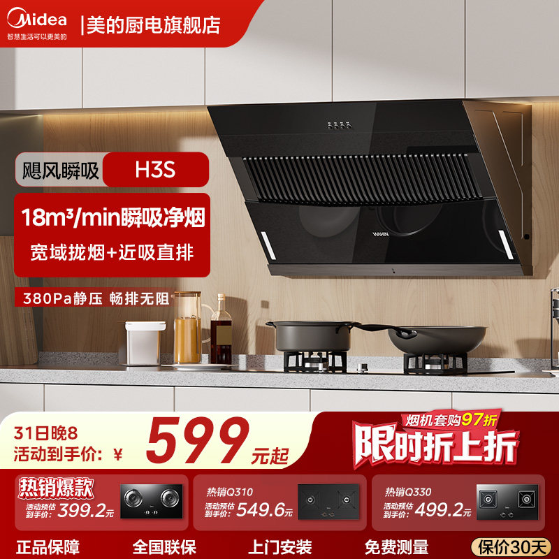 美的出品华凌H3S抽油烟机家用厨房大风量大吸力侧吸官方旗舰店
