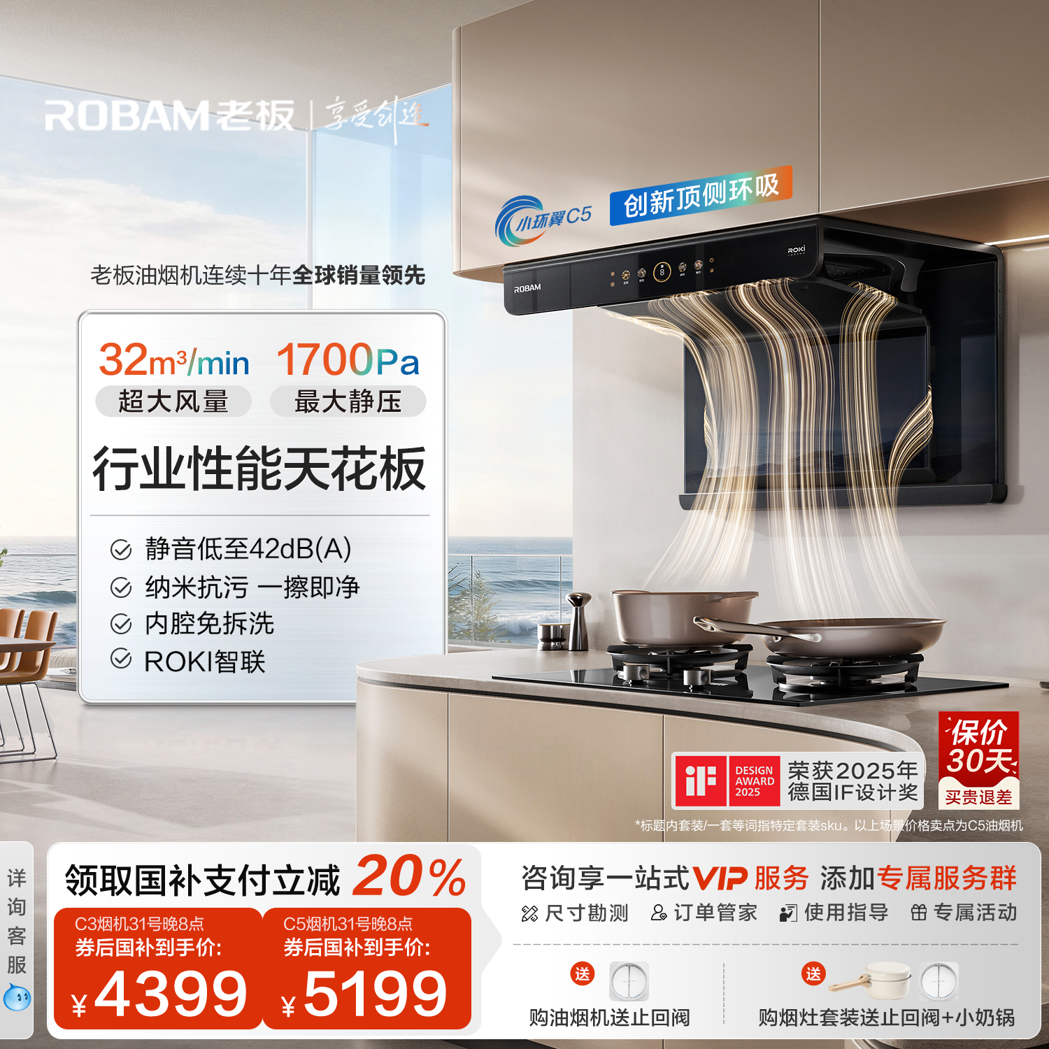 老板小环翼C5顶侧双吸C3抽油烟机燃气灶一套家用官方旗舰店正品