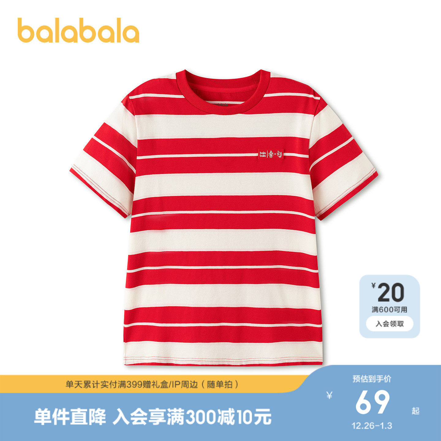 【商场同款】巴拉巴拉儿童短袖t恤男春秋上衣女童内衣打底衫条纹
