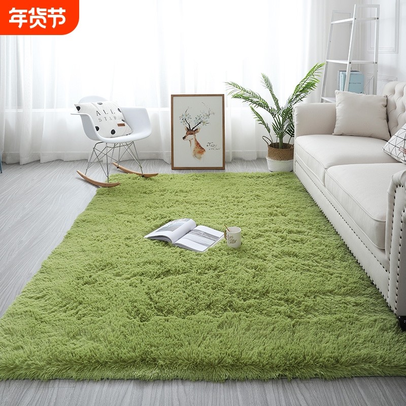 新款可机洗丝毛客厅卧室地毯风少女床边毛绒地垫绿色奶油白色阳台
