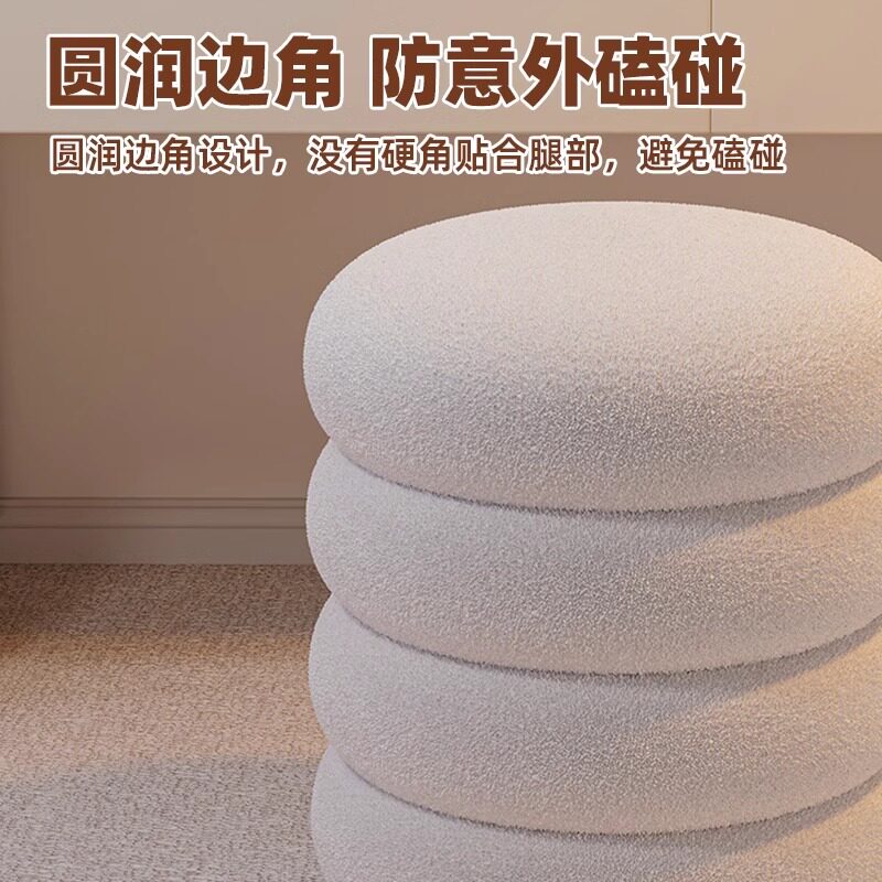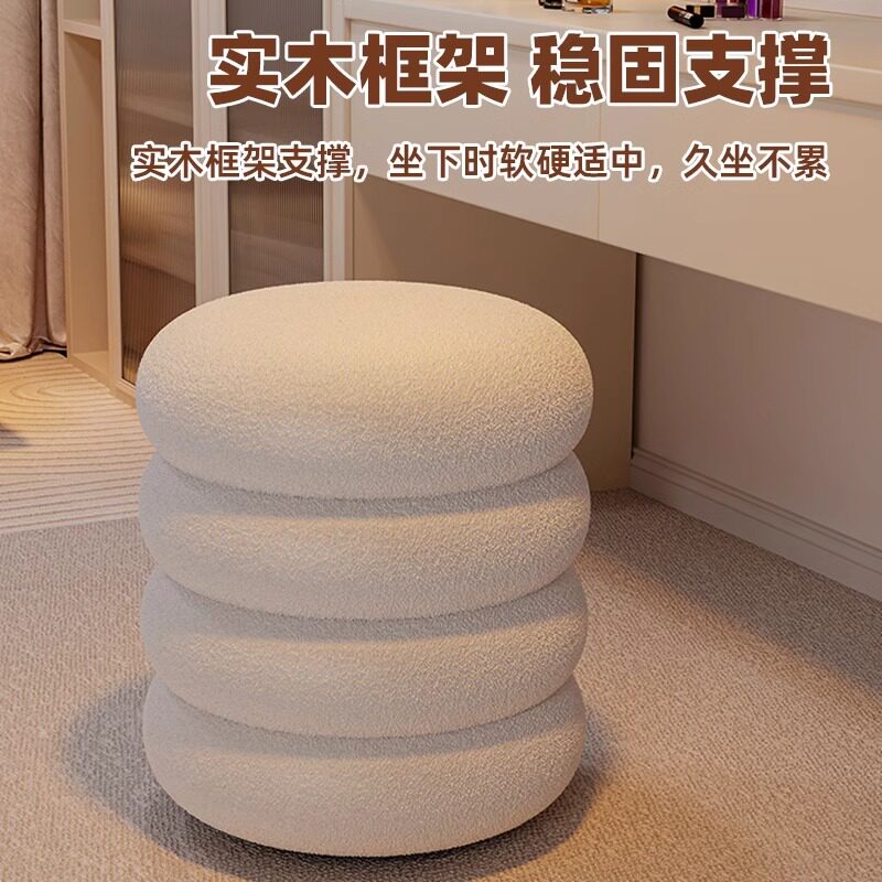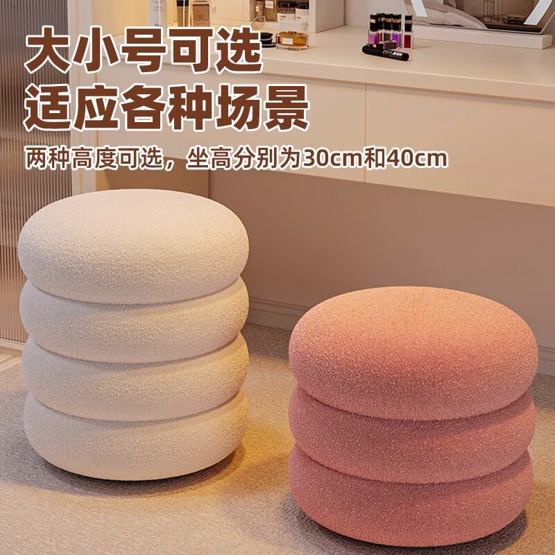 梳妆台凳子家用女生卧室羊羔绒化妆凳坐墩书桌圆板凳美甲椅子轻奢