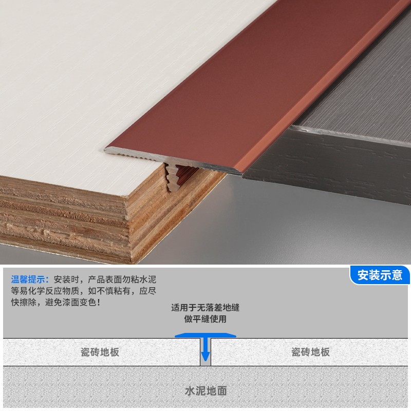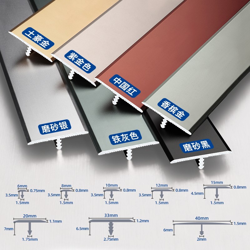 T型铝合金木地板压边条瓷砖收口收边条金属装饰线条缝隙门槛扣条