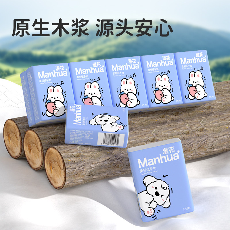 漫花手帕纸学生宿舍实惠装卫生纸巾原生木浆便携小包餐巾纸面巾纸