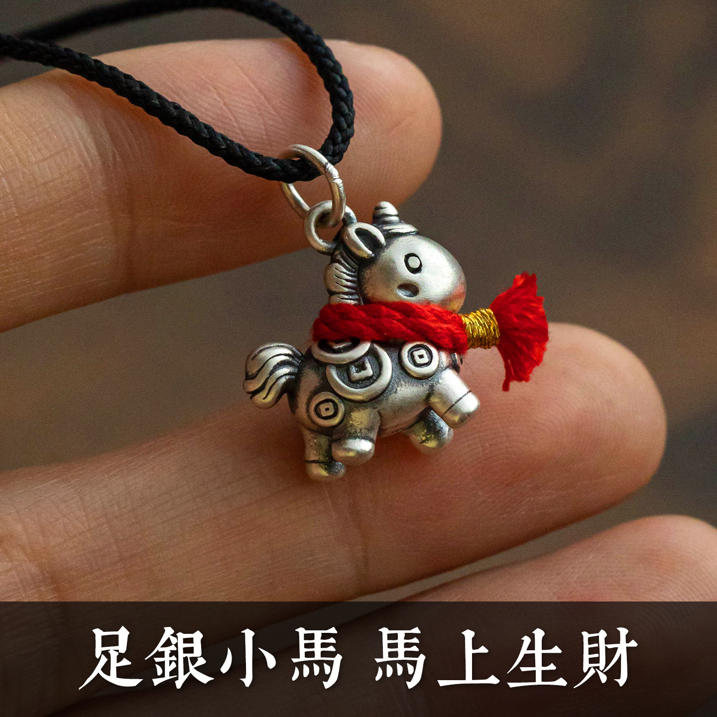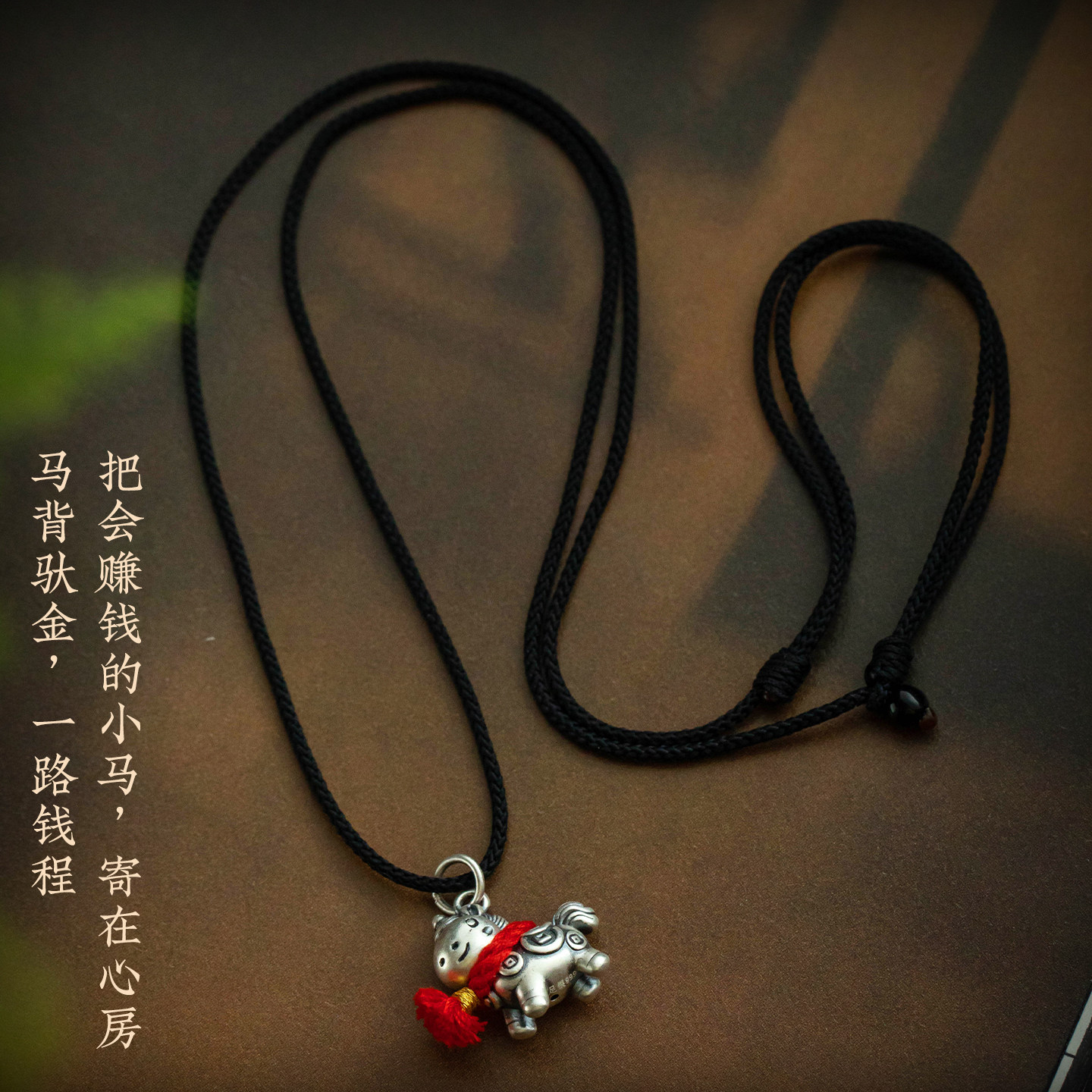 大善堂足银999复古马年吊坠纯银可调节生肖马本命年毛衣链男女礼