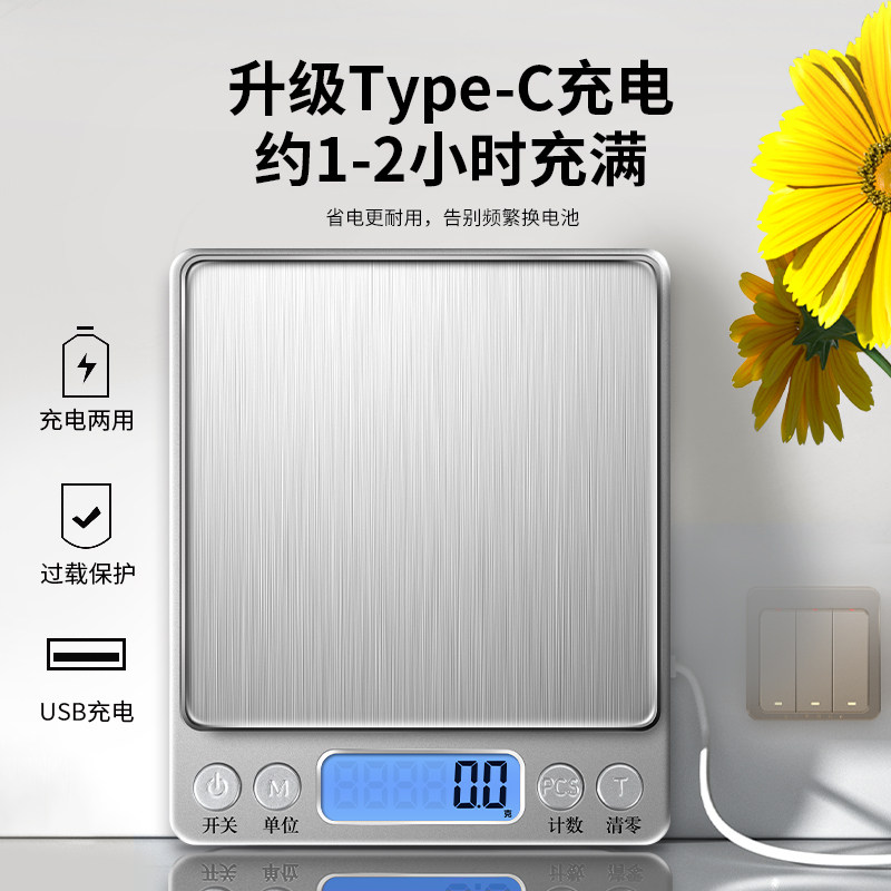 小型电子秤克称电子称高精度厨房秤烘焙精准家用中药食物秤小称数
