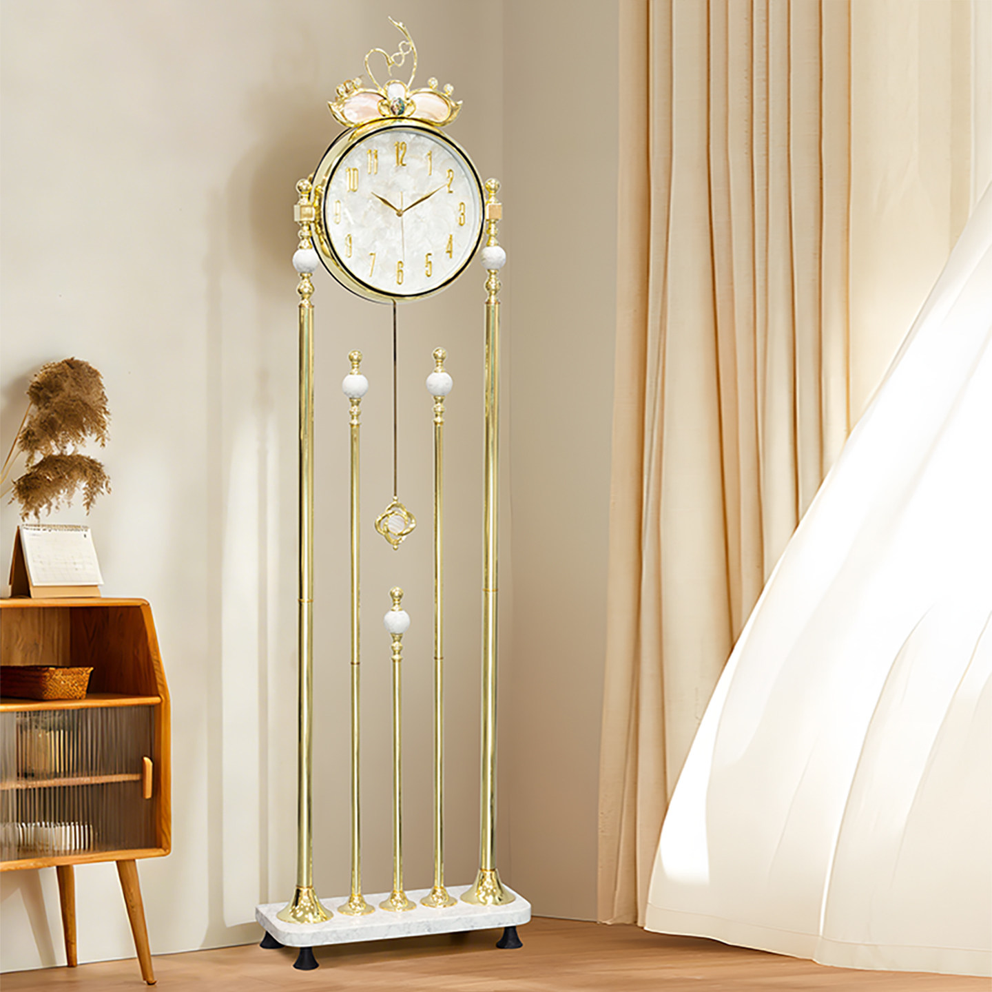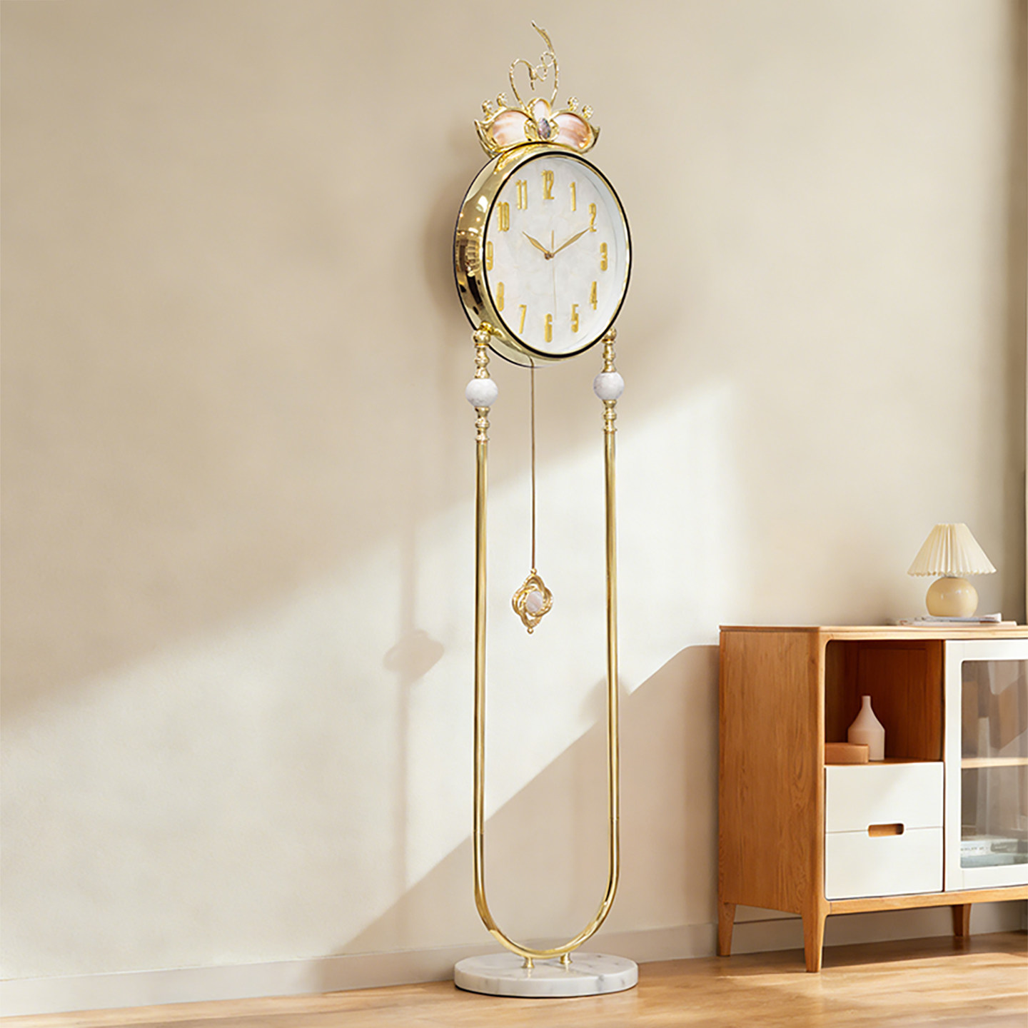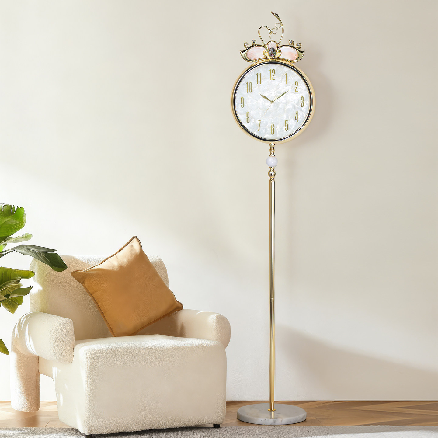 欧式轻奢贝壳落地钟家用客厅高档立钟表别墅大气现代静音摆件座钟
