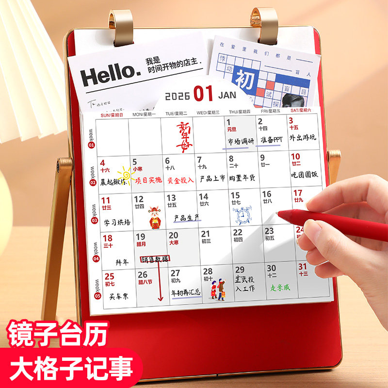 台历2026年新款日历定制logo创意简约小清新韩式办公年历个性中国风桌面摆件商务工作记事计划本订制广告月历