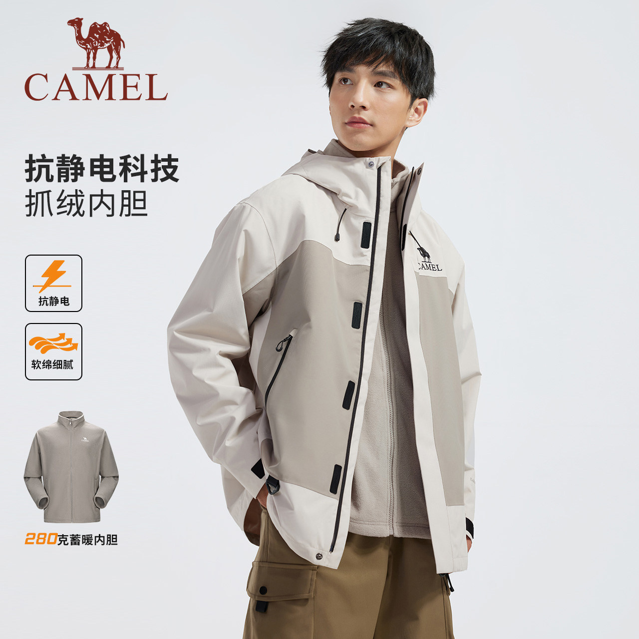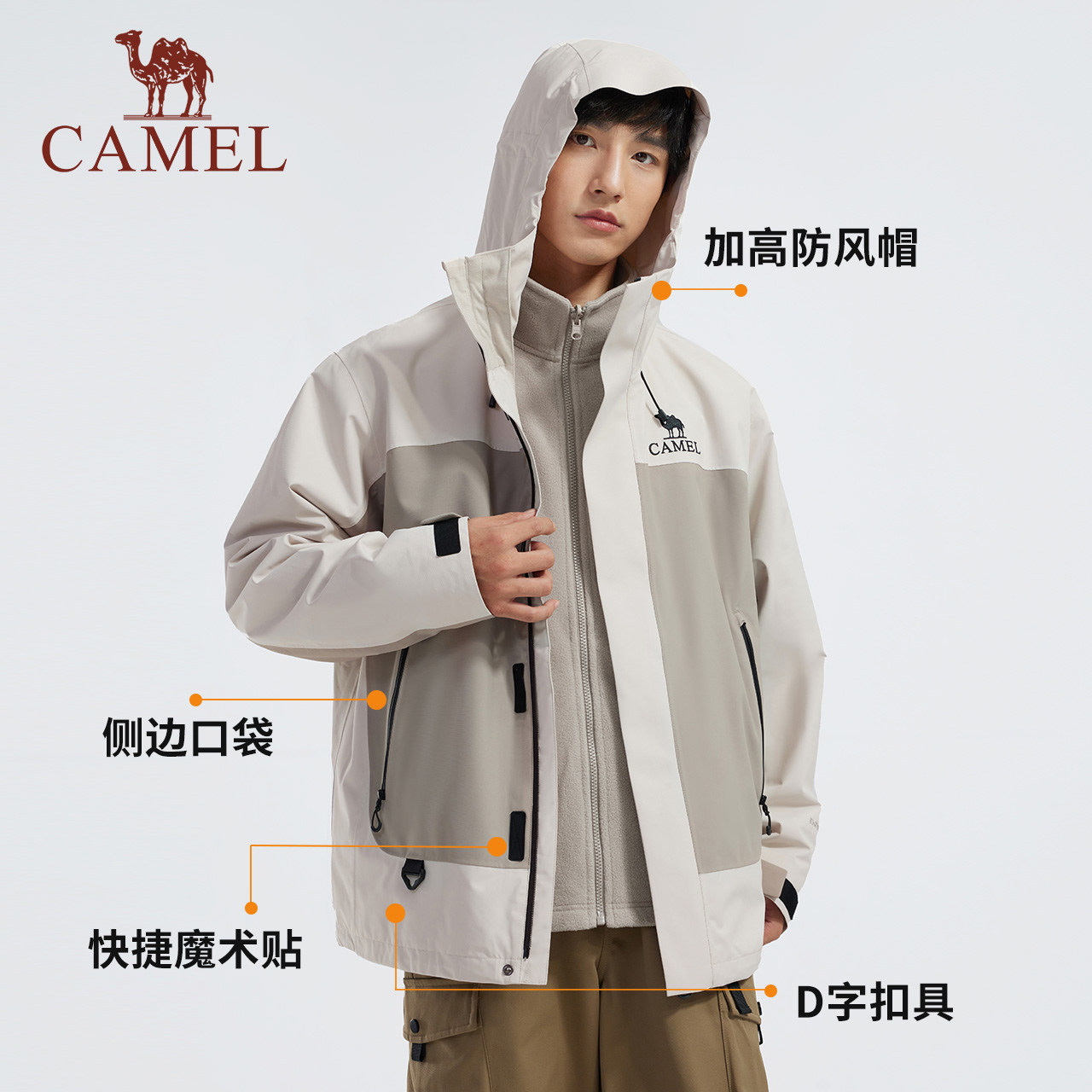 骆驼冲锋衣三合一可拆卸两件套男女情侣款外套户外防水旅游登山服