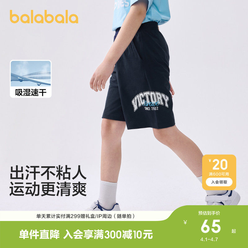 巴拉巴拉童装儿童五分裤子男大童短裤2026夏季薄款速干跑步运动裤