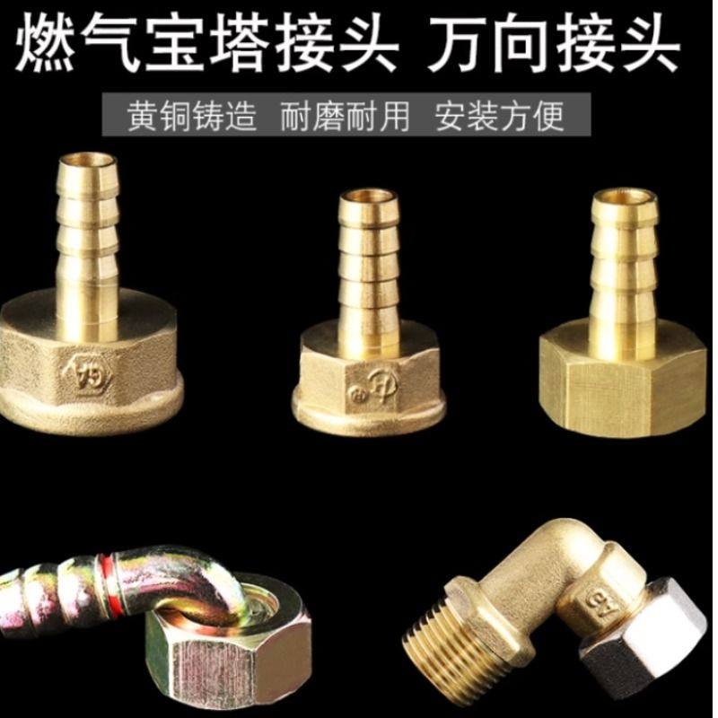 内丝宝塔接头燃气灶进气口90度万向弯头热水器活接4分燃气管黄铜