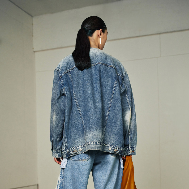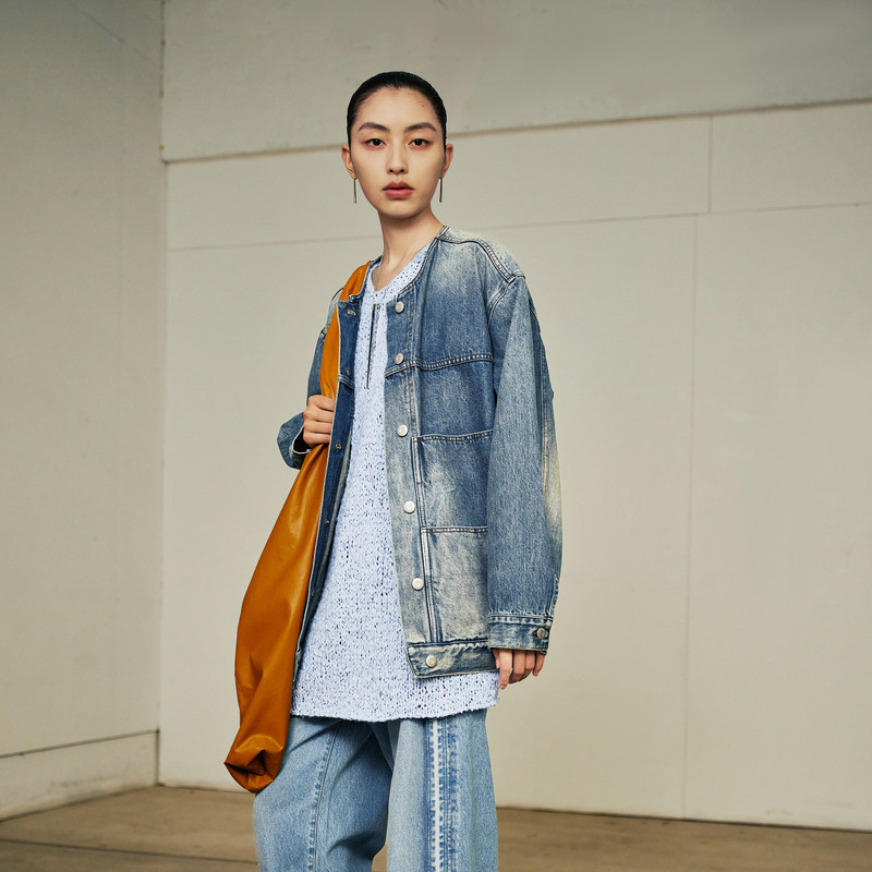 【LESSxSamuel】春圆领大口袋工装风水洗牛仔夹克外套2O2610180