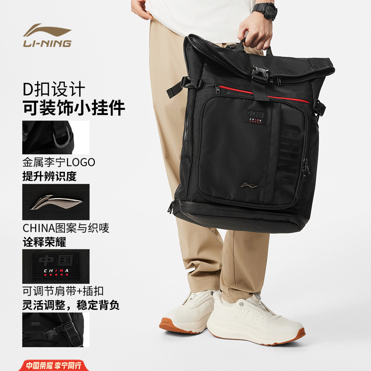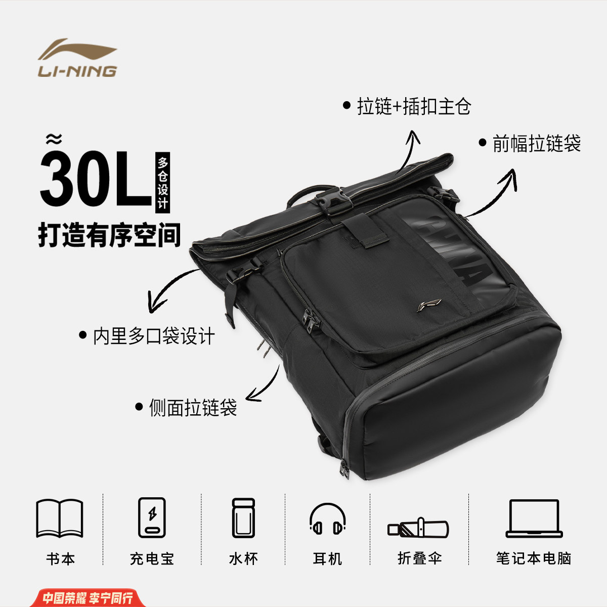 李宁双肩包男包女包2026新款李宁荣耀系列背包学生书包环保运动包