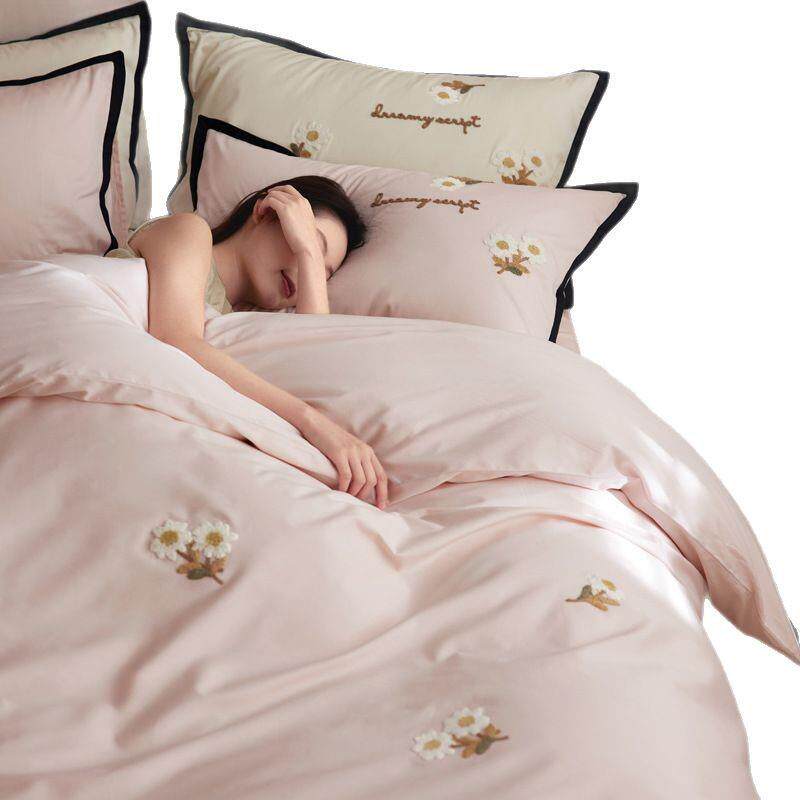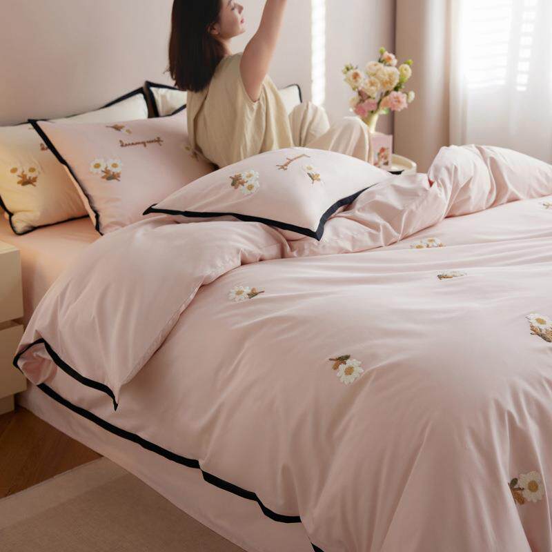 100S高支全棉长绒棉四件套小清新少女心毛巾绣雏菊花纯棉床上用品