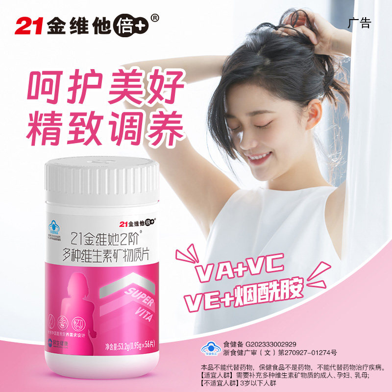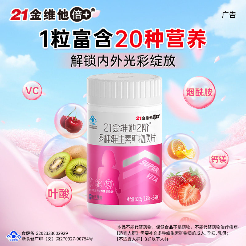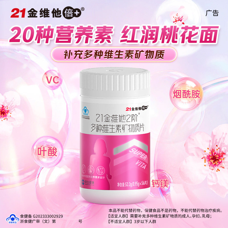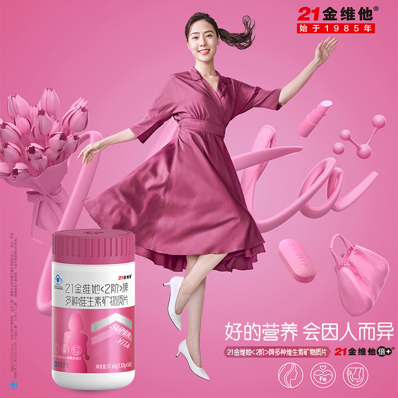 21金维他桃花瓶女士复合维生素女性多种矿物质B族烟酰胺叶酸片维C