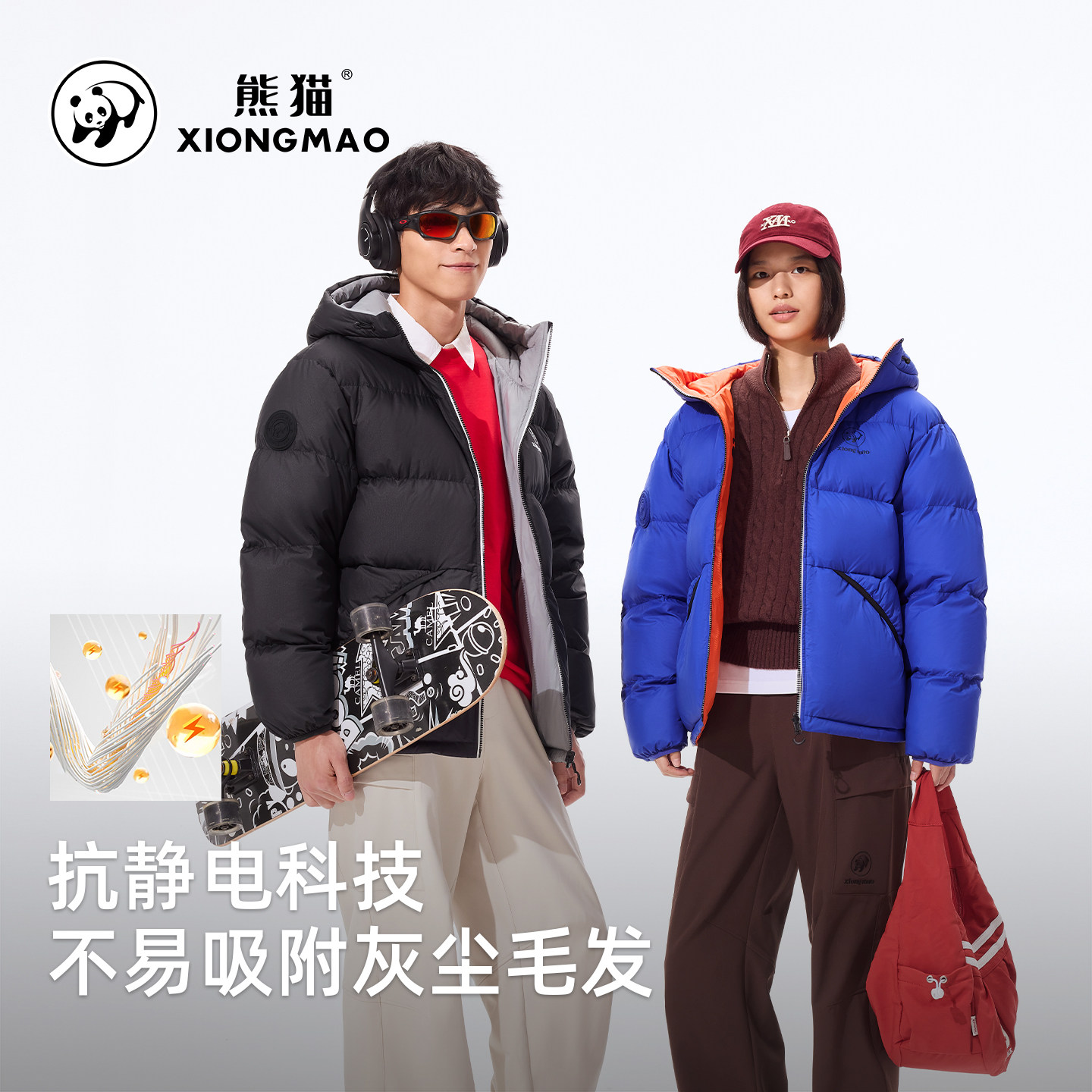 骆驼熊猫系列短款羽绒服女2026冬季白色双面穿情侣羽绒外套男