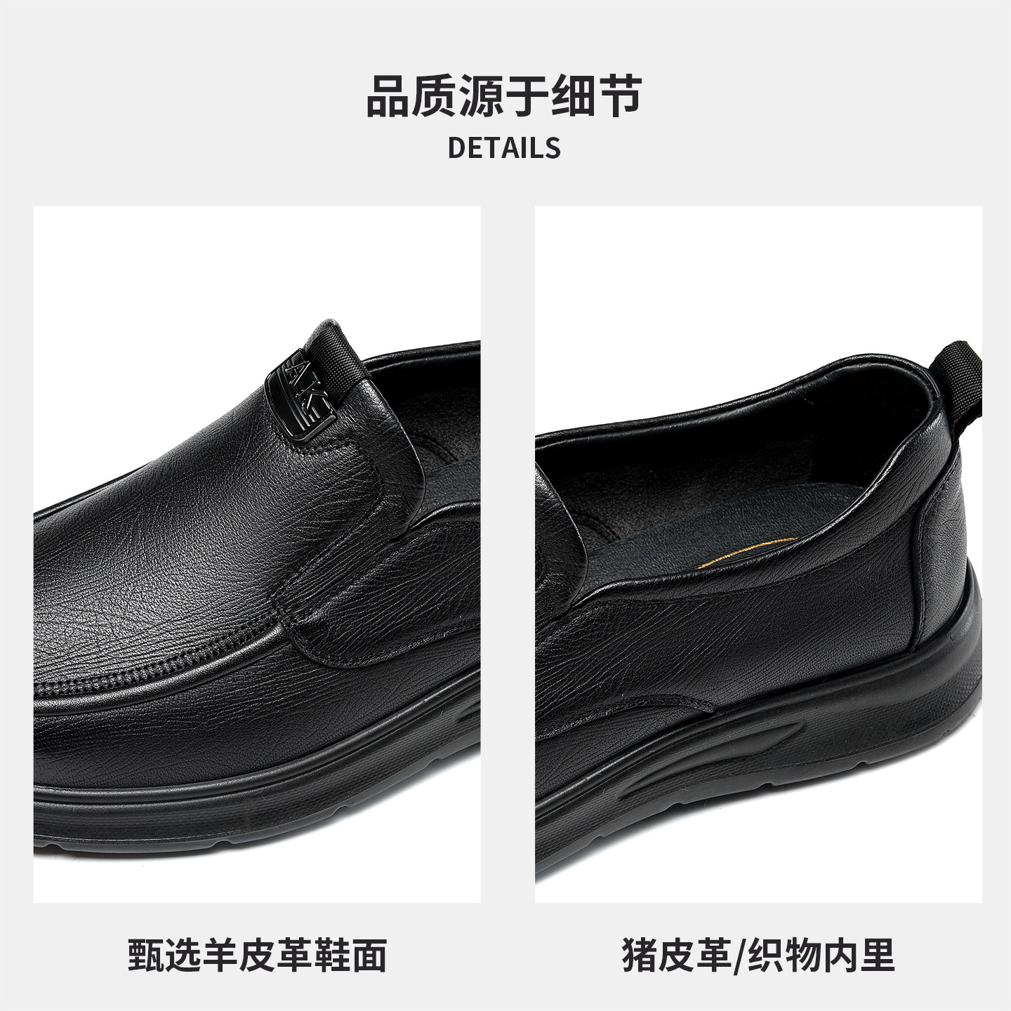 奥康春秋季商务休闲皮鞋男真皮软底乐福鞋舒适一脚蹬套脚爸爸鞋