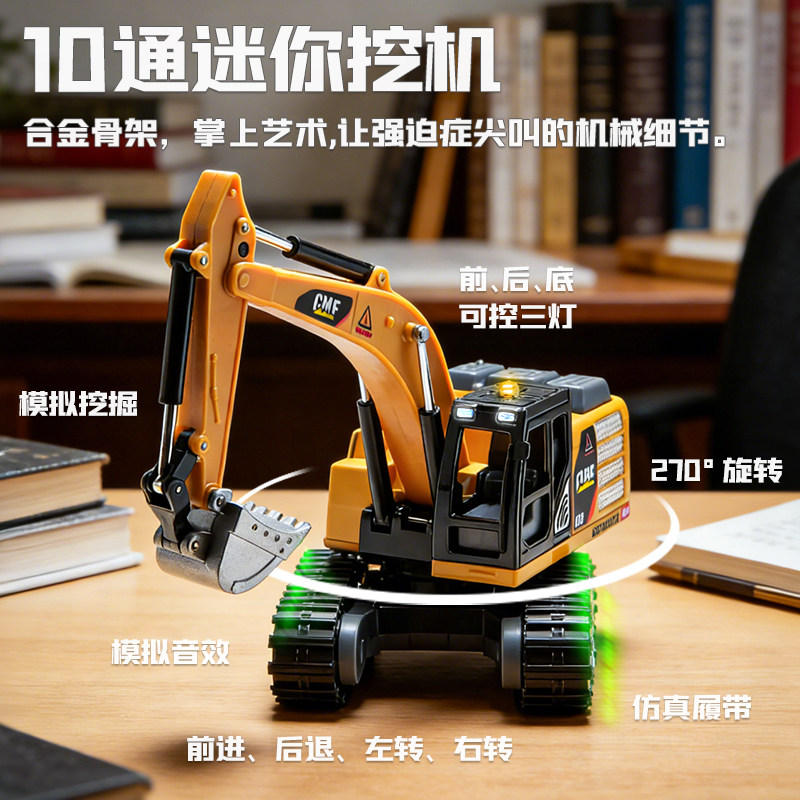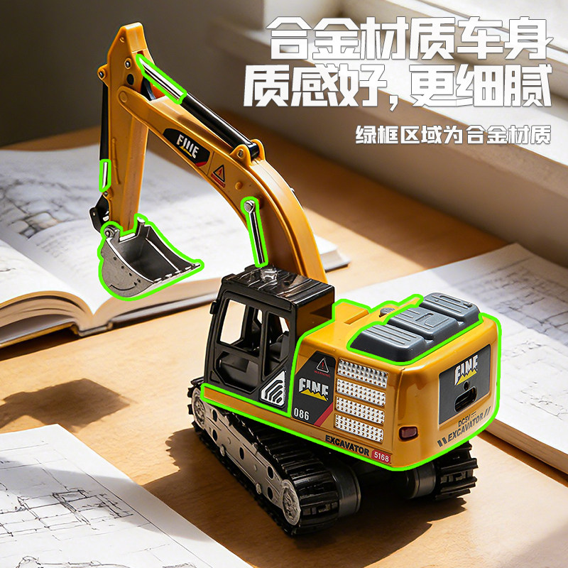 164迷你挖掘机叉车遥控汽车工程车合金车模儿童玩具男孩金属挖机