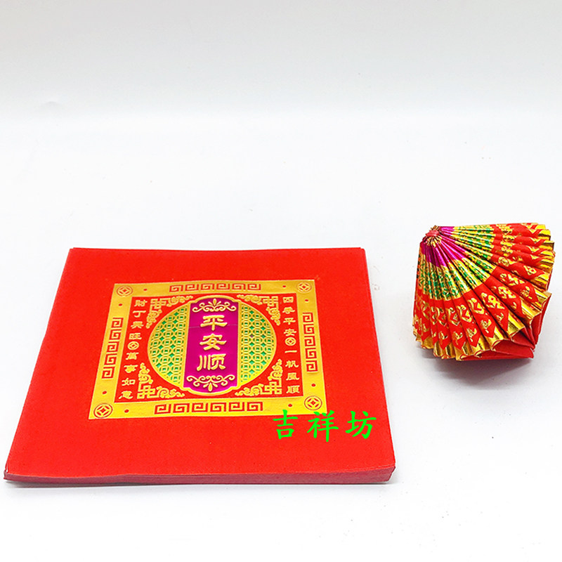 包邮 烫金单连平安顺福钱 潮汕中秋折塔折花篮手工折纸工艺品