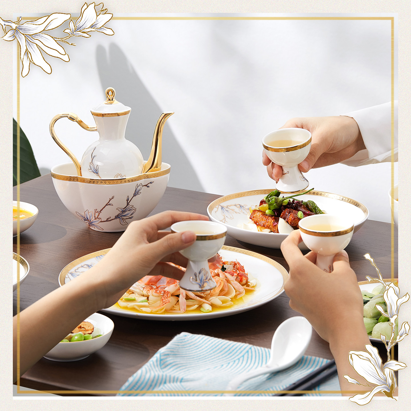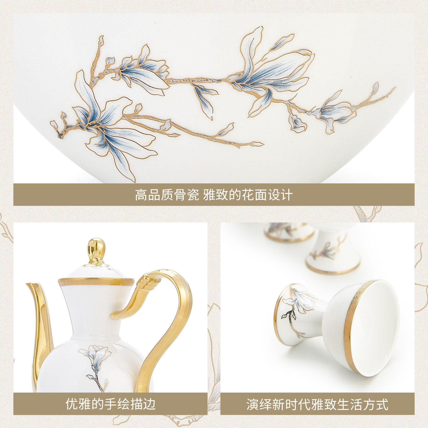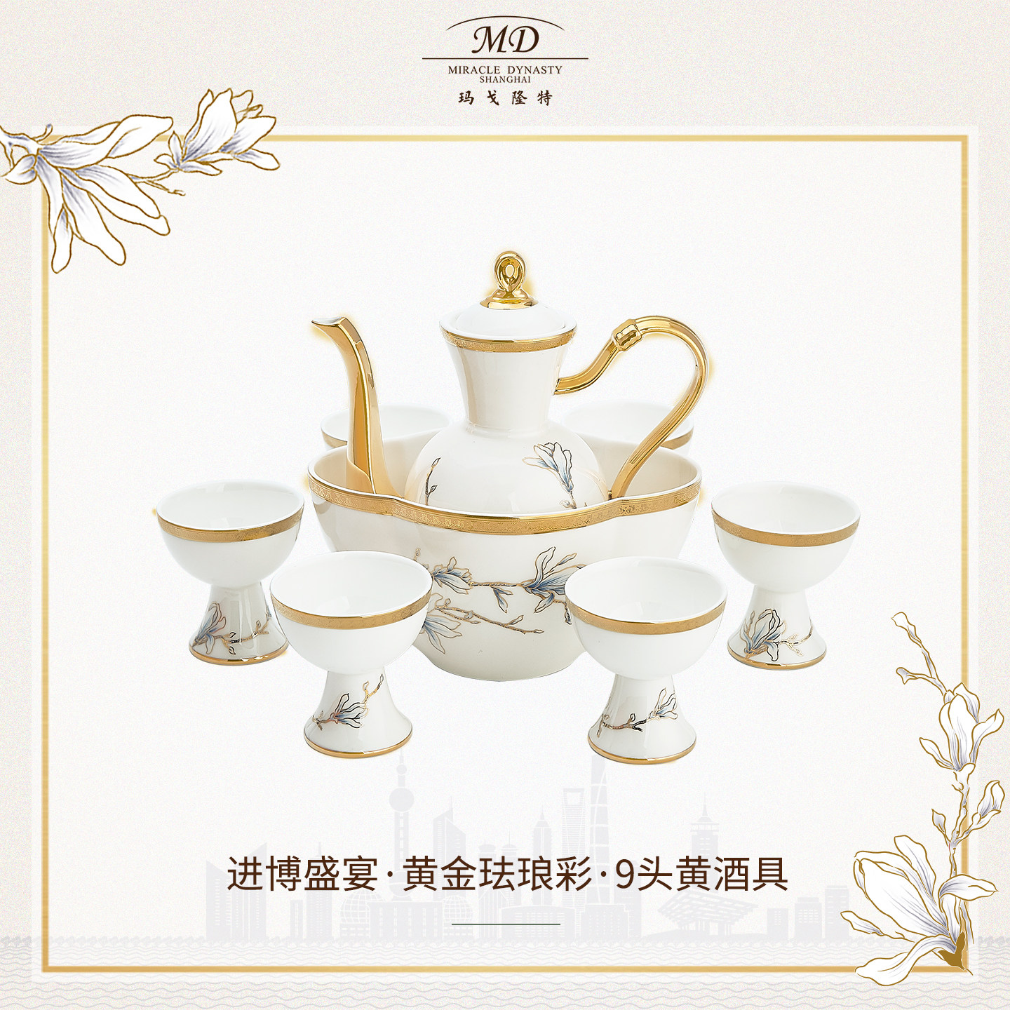 玛戈隆特 6人份进博盛宴骨瓷酒具套装 家用中式创意黄酒具 礼盒装