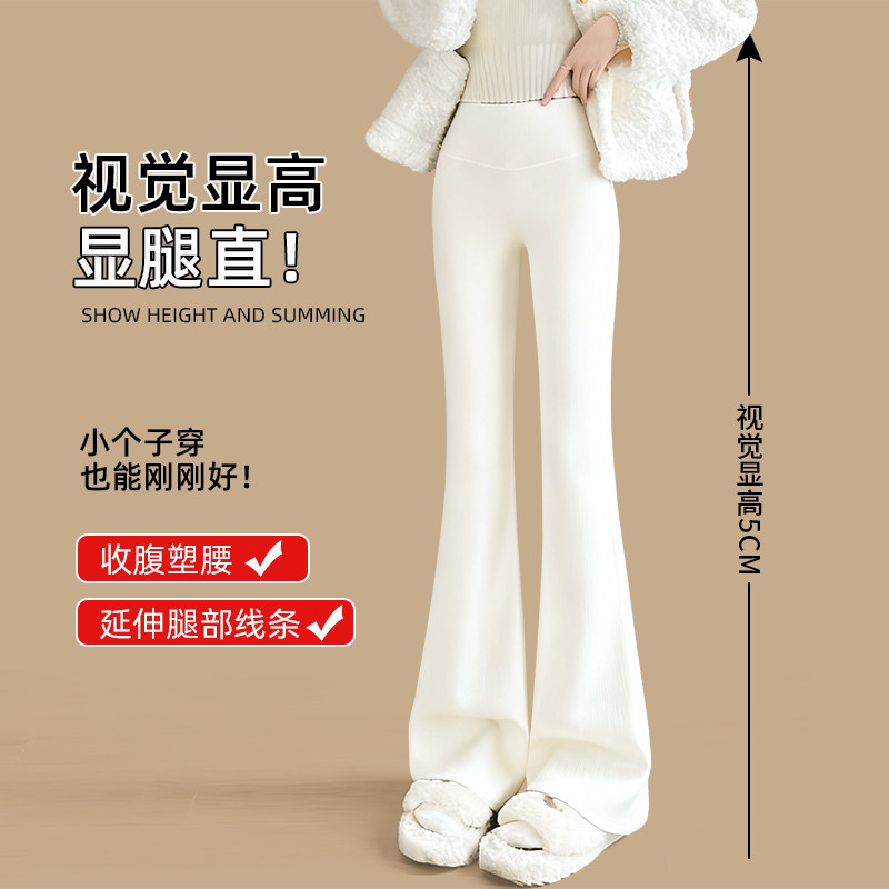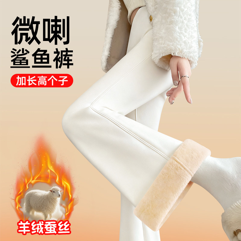 加绒微喇鲨鱼裤女秋冬2026新款加厚保暖棉裤高个子白色瑜伽喇叭裤